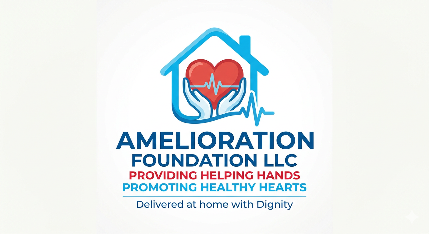 At Amelioration Foundation LLC, we believe in compassionate care, dignity, and support for every client we serve. Our mission is rooted in the values represented by our logo: Providing helping hands & promoting healthy hearts — delivered at home with dignity We are honored to walk alongside you on your journey to improved health and wellbeing.
